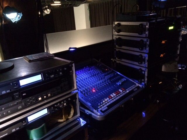 ベルを鳴らすスイッチの横には音響の卓とMDとCDデッキがあります。