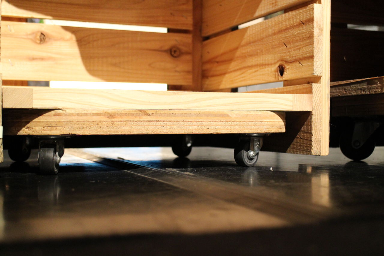 下にキャスターを付けてスムーズに可動し転換出来るようにしています!!