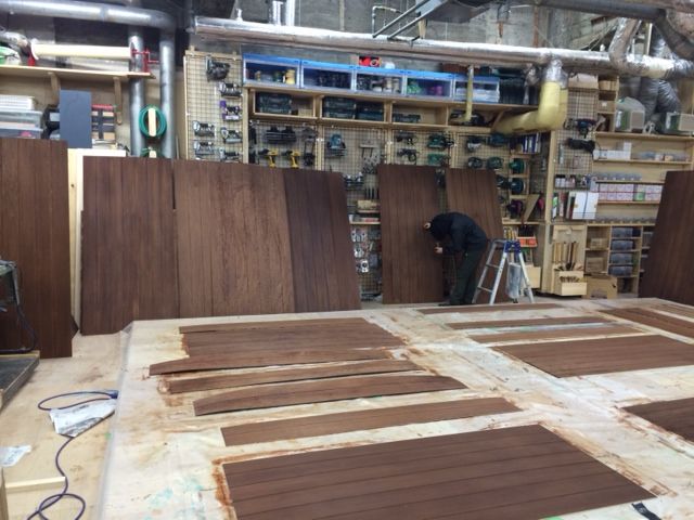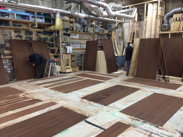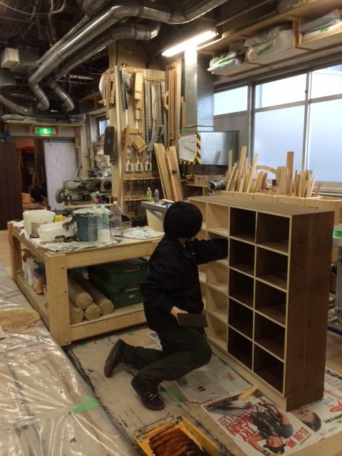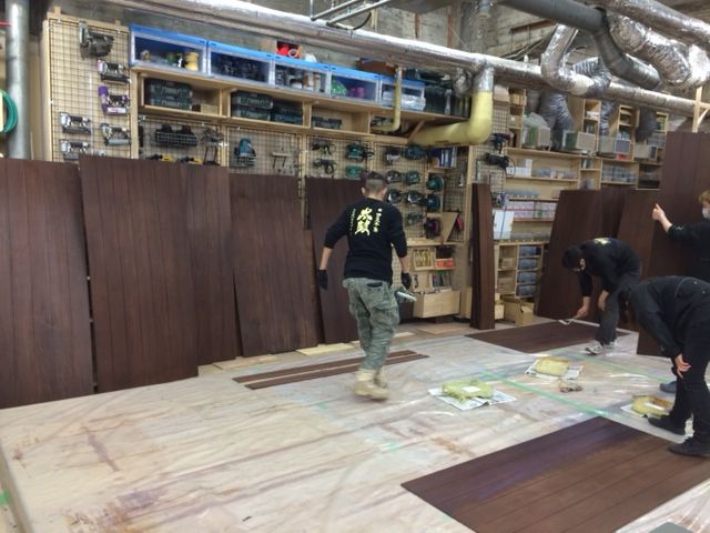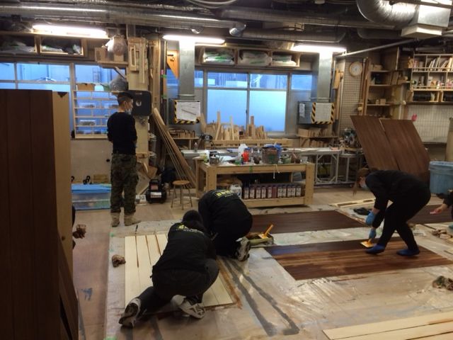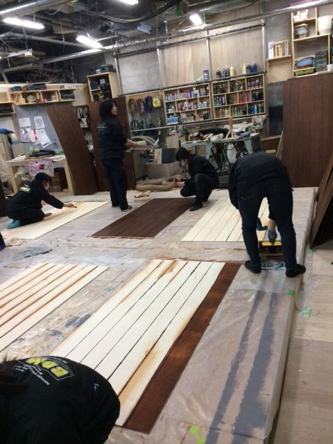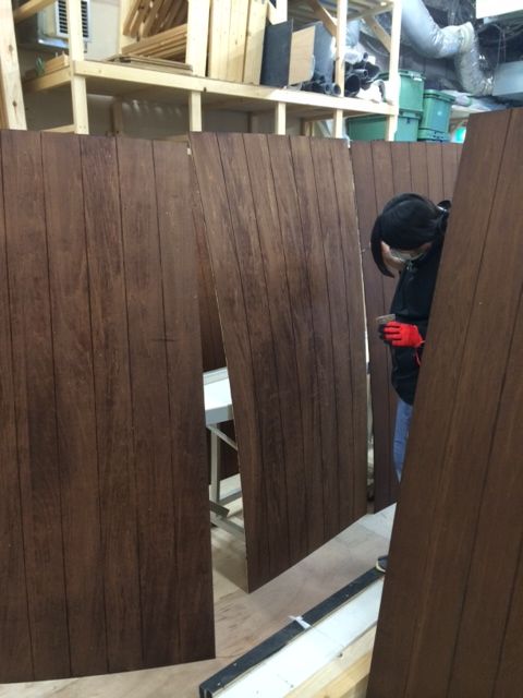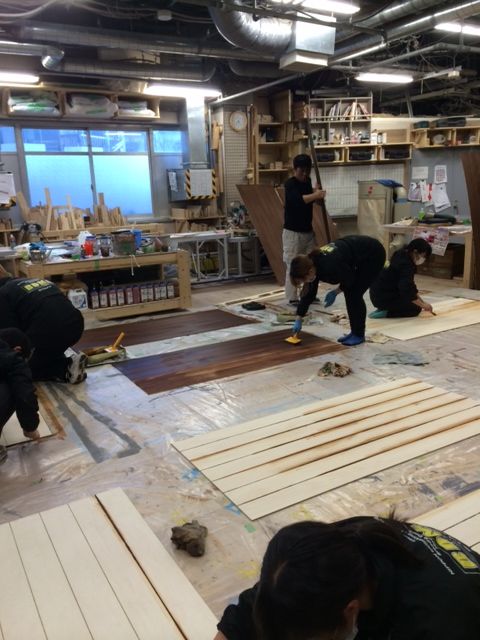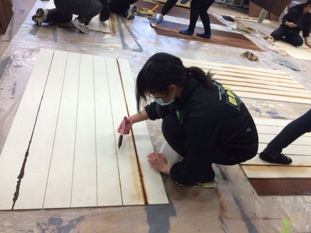 今日は前回紹介した目地を彫った板の着色を行いました!