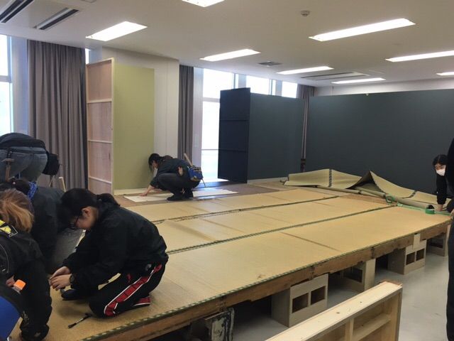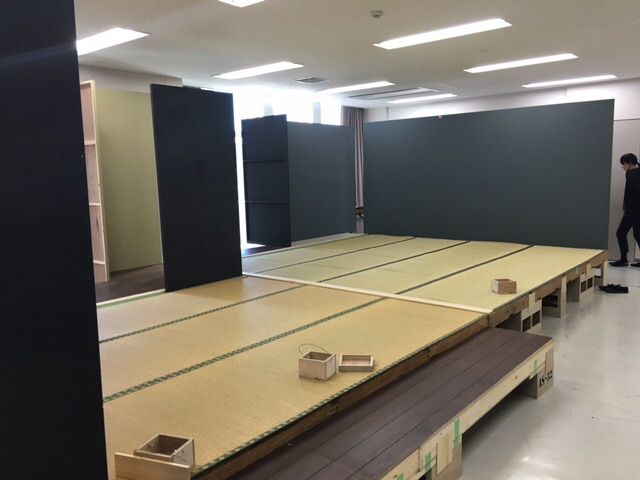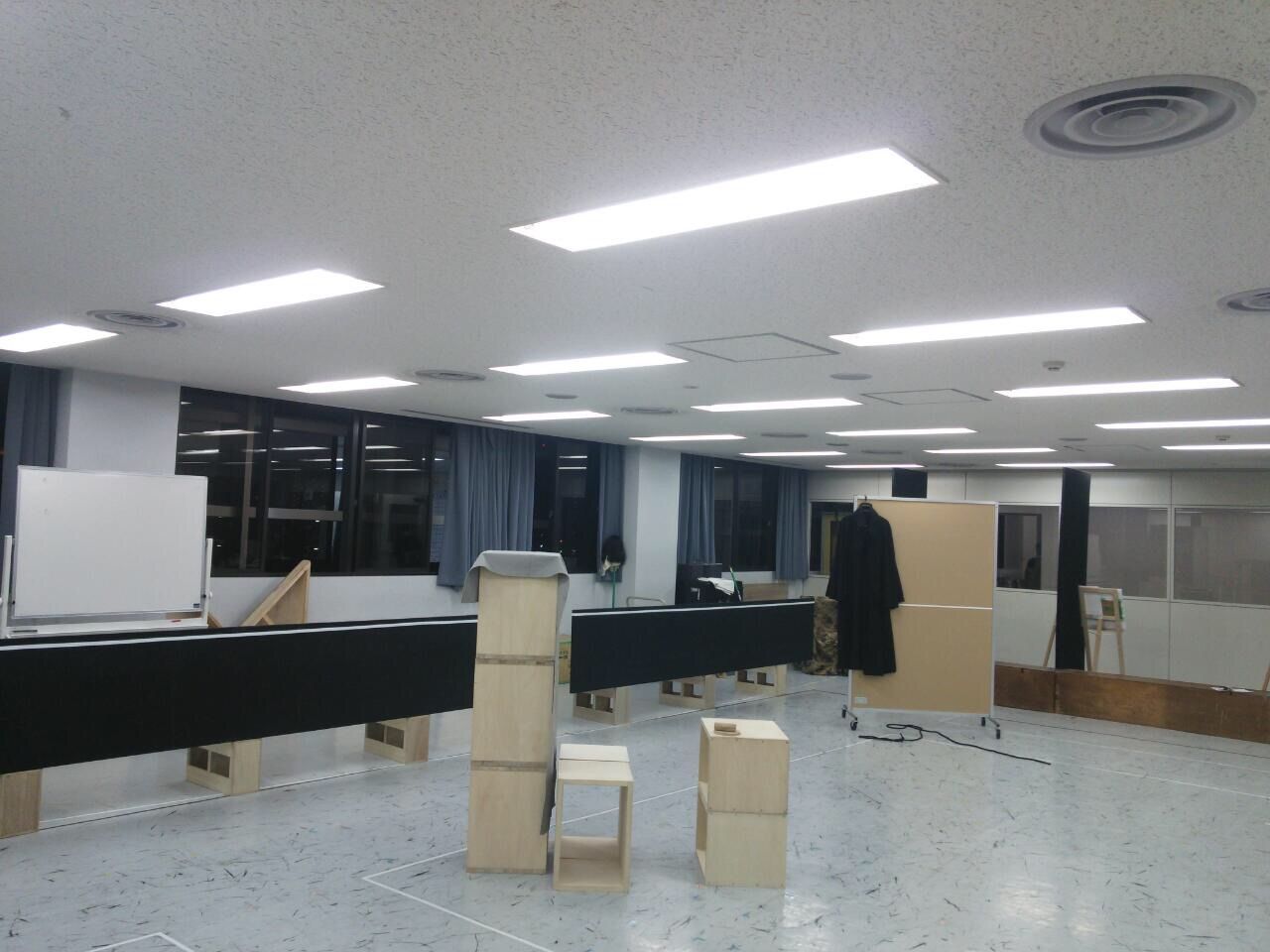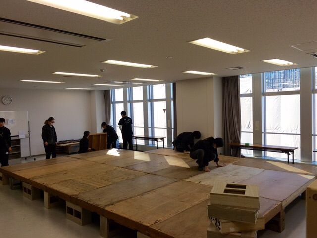1年生修了公演「根岸庵律女」の公演セットは、先ほどのセットとは別のパターンを使うクラスもあり別のセットを立ち稽古用に建てます。