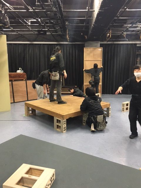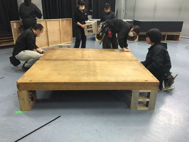 本番のセットと同じように動きが出来るように、舞台の高さを同じように組みました。