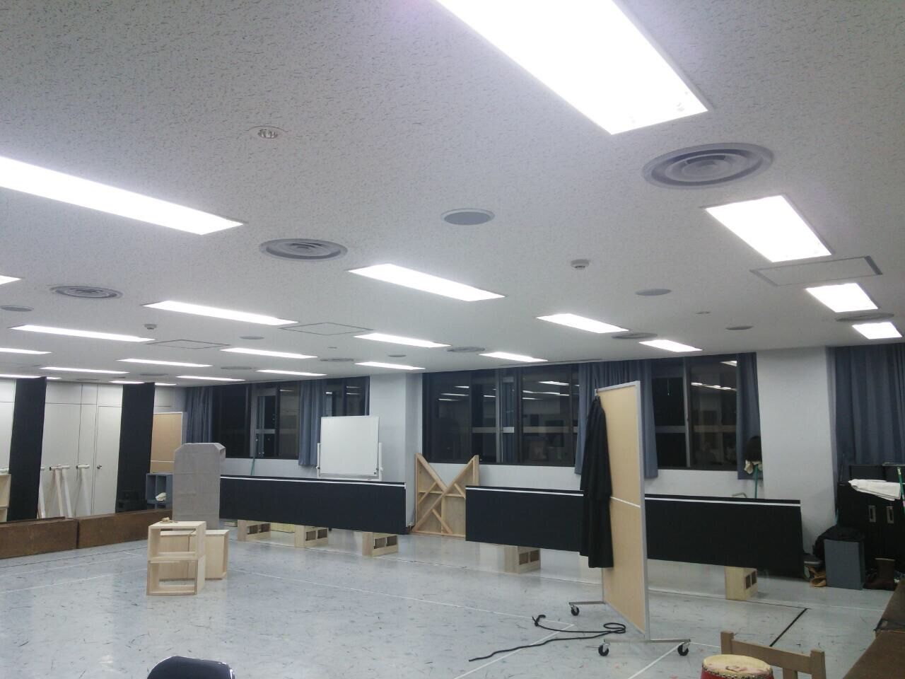 色々な稽古場に立ち稽古用の簡易セットがどんどん建っていきます。
