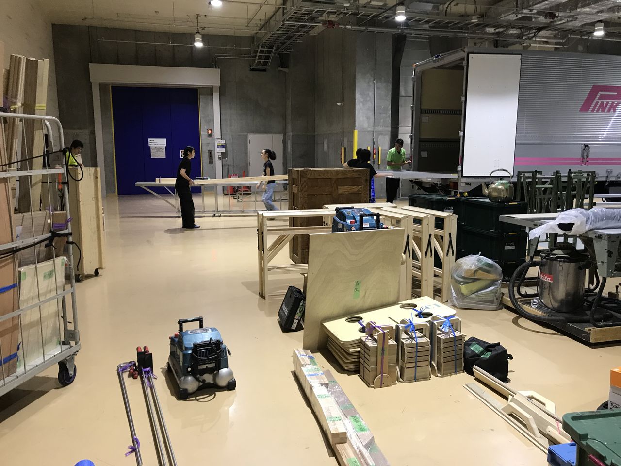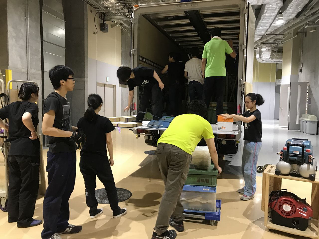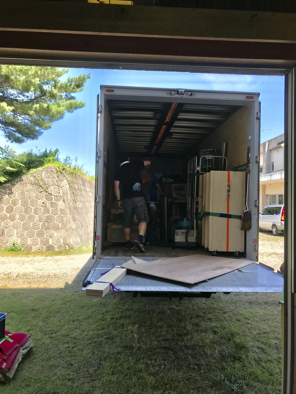 7/31(火) 講習会で使用する機材・資材のトラックへ積み込みます。