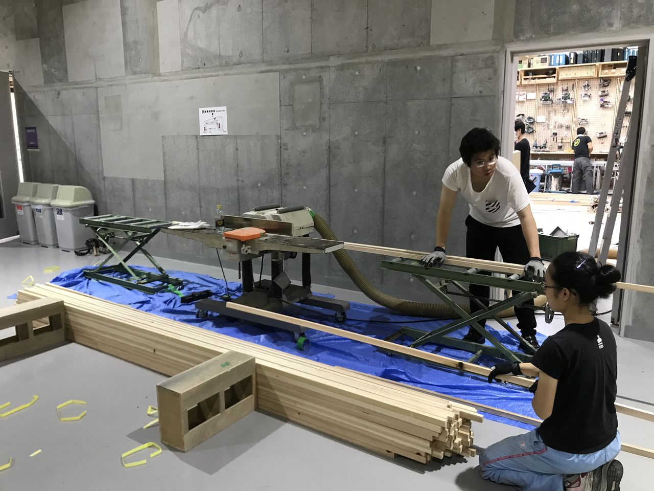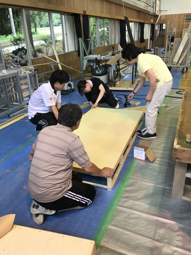 皆んなで床面には養生をします。