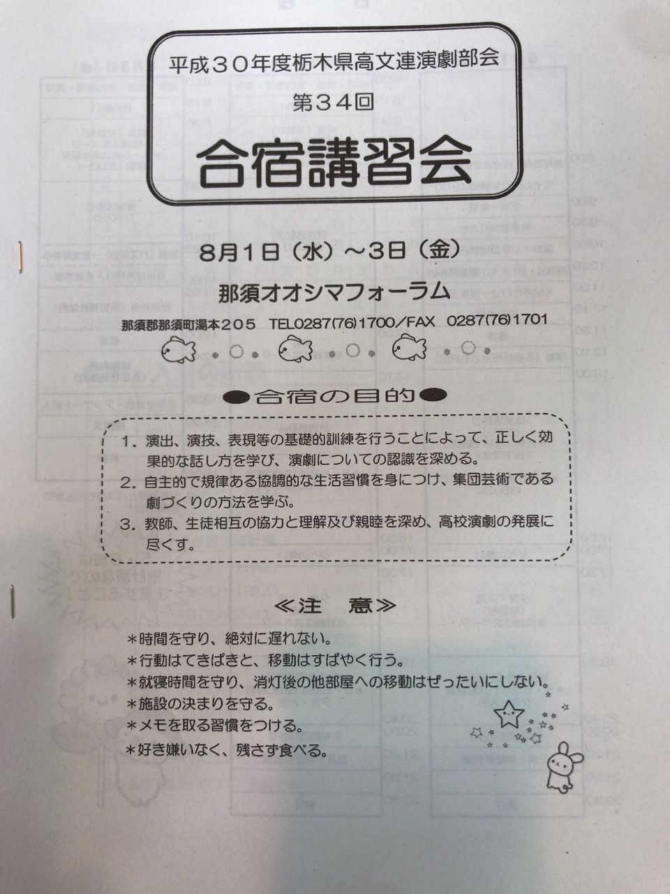 8/1(水) 本日より3日間「平成30年度栃木県高文連 第34回合宿講習会」です。
