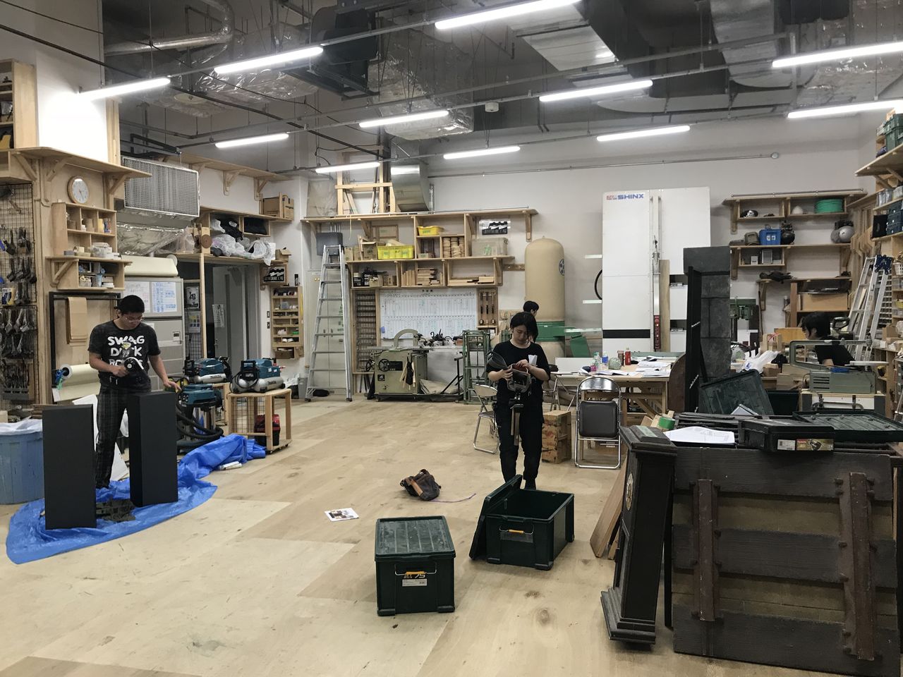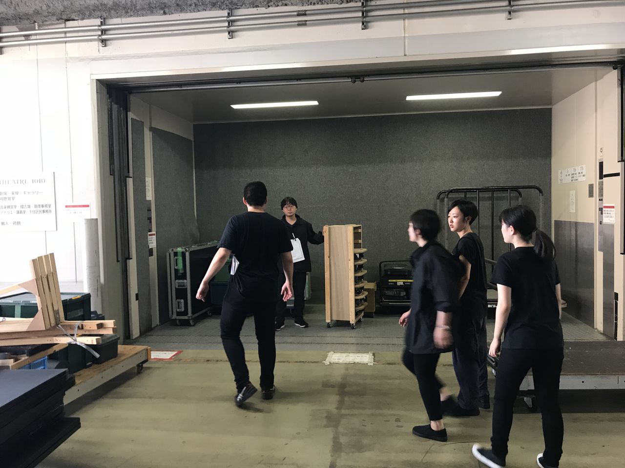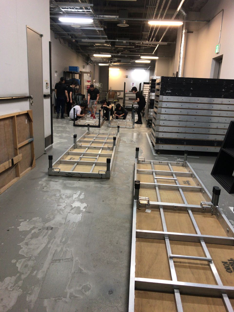 その間に演出部は、搬入口でアルミデッキで台を組みます。