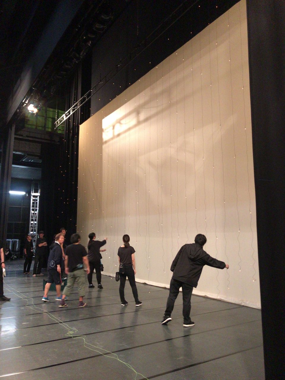 同時に演出部(舞台監督部・大道具部)は紗幕を吊り込み作業をします。
