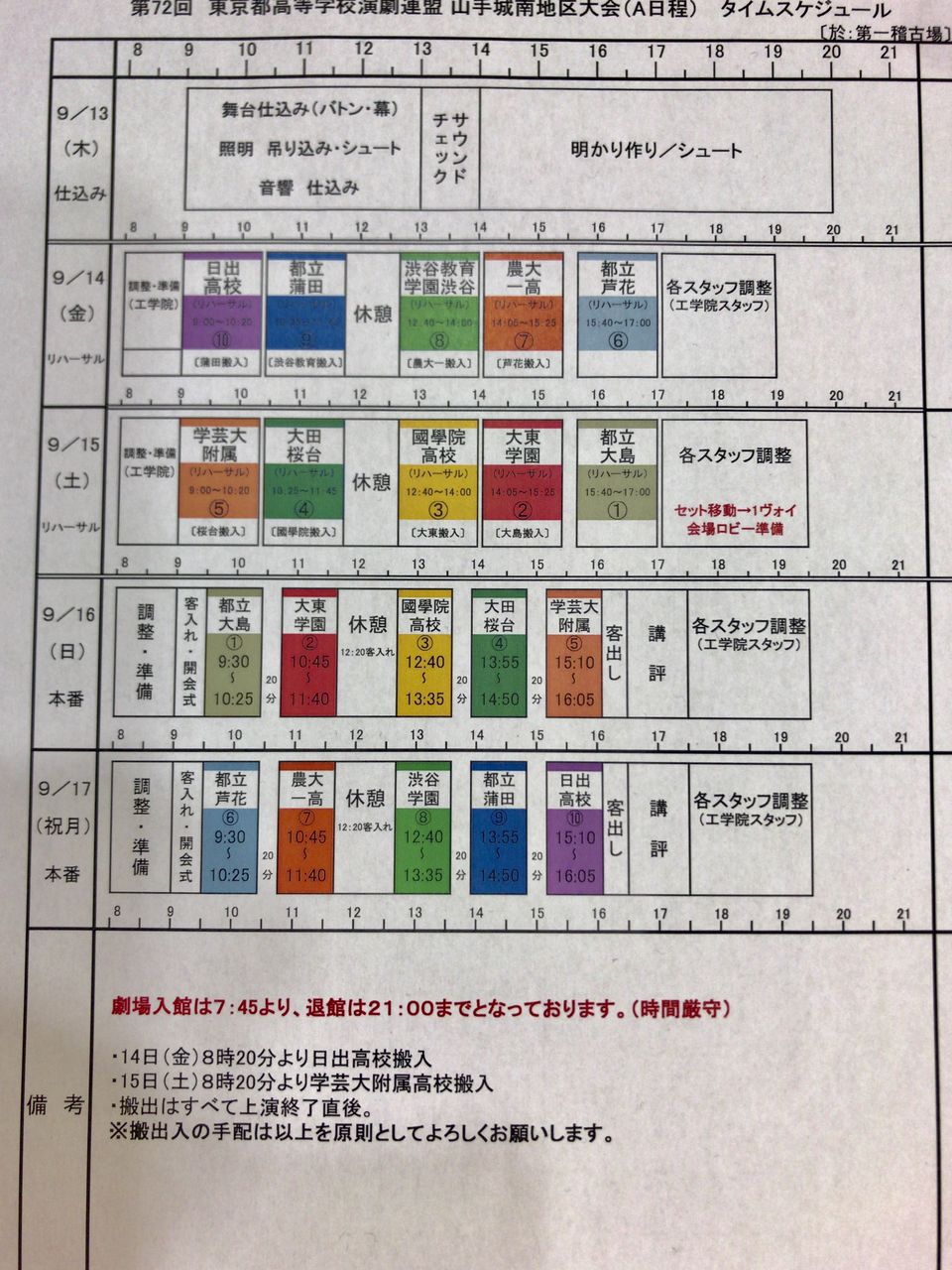 9/14(金) 本日より「第72回 東京都高校演劇山手城南地区大会」A日程リハーサル1日目始まりました。