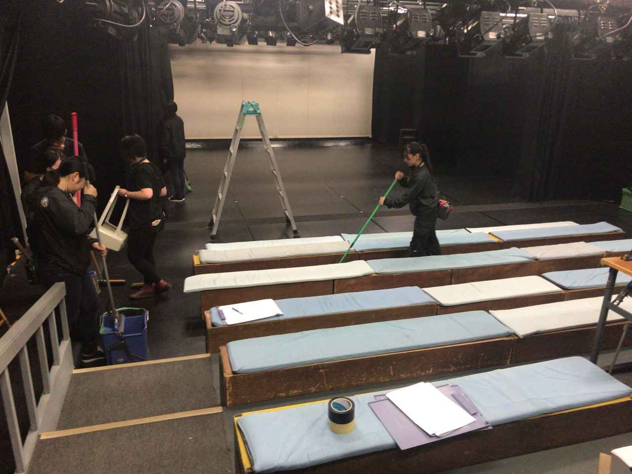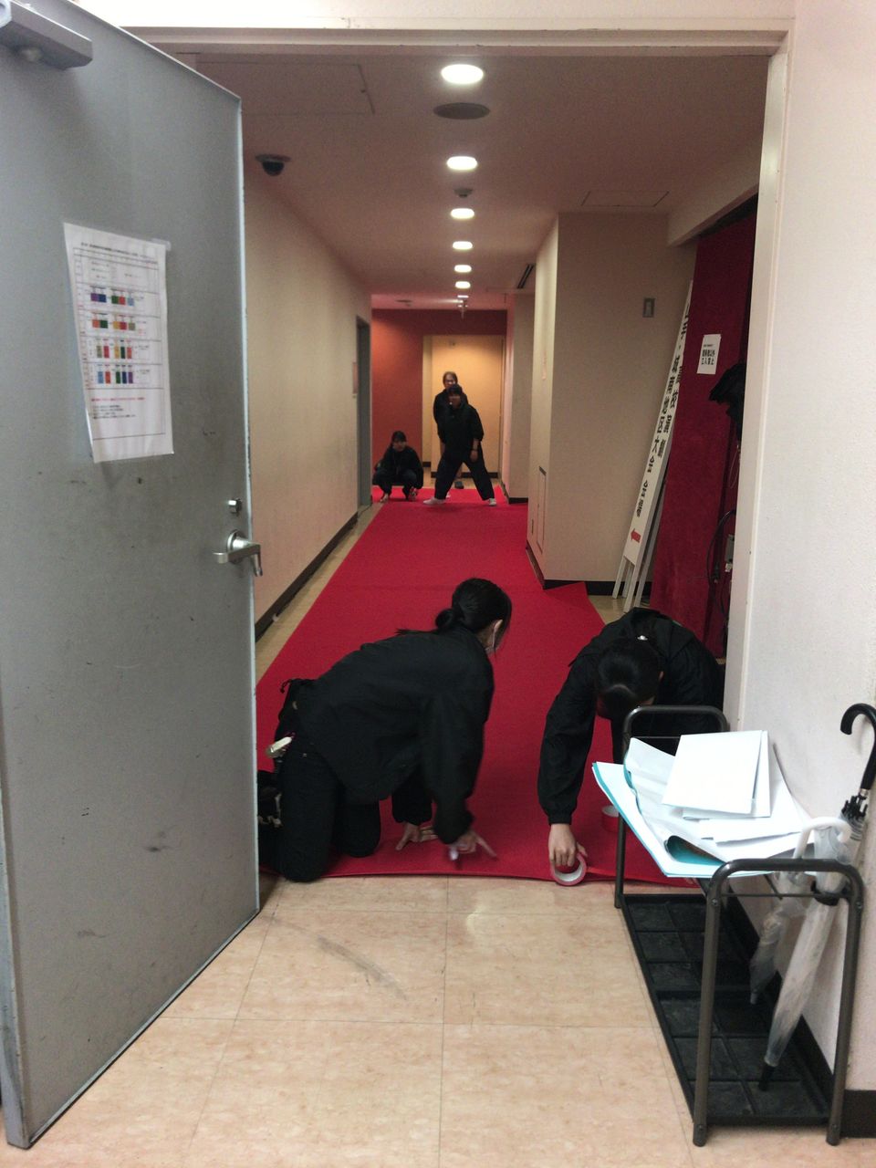 そして明日からの本番に向けて、廊下や客席の準備を照明部、音響部、演出部の皆んなで準備します。
