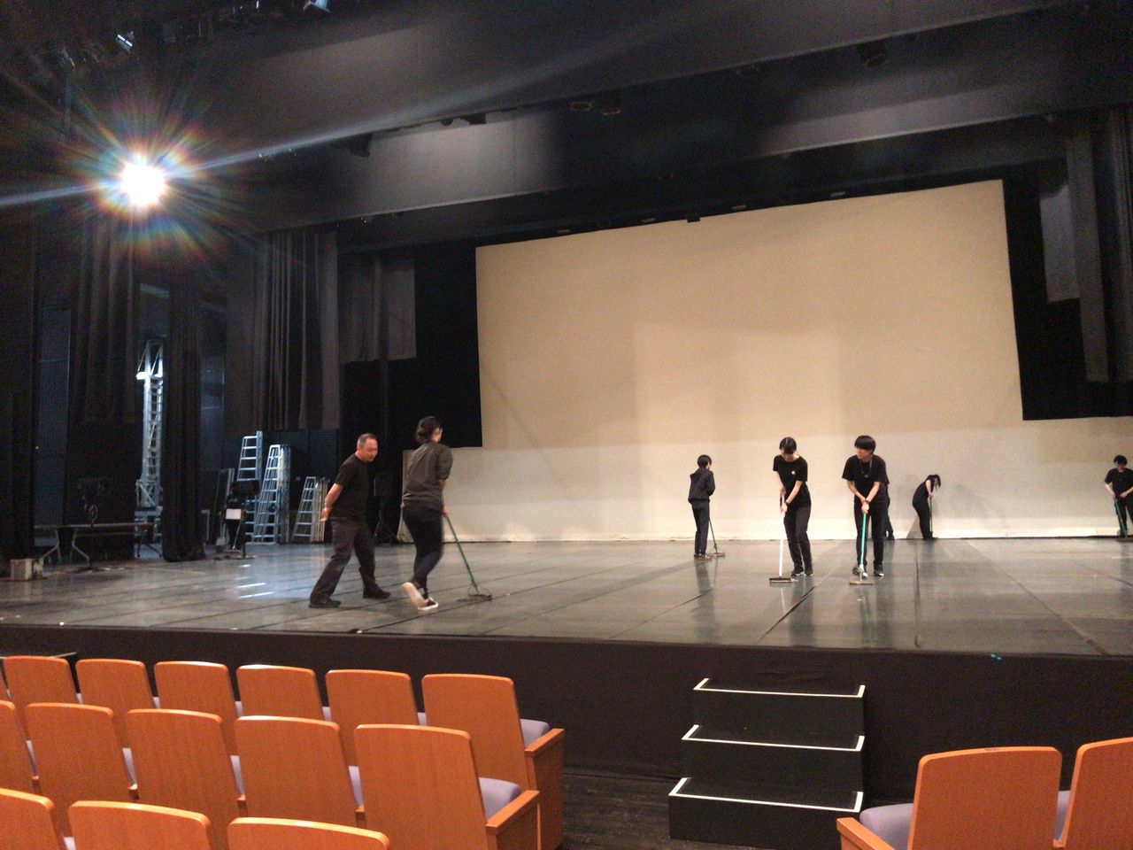09:00 演出部チーム(舞台監督・大道具)は劇場入りして直ぐに舞台周りの掃除とチェックをします。