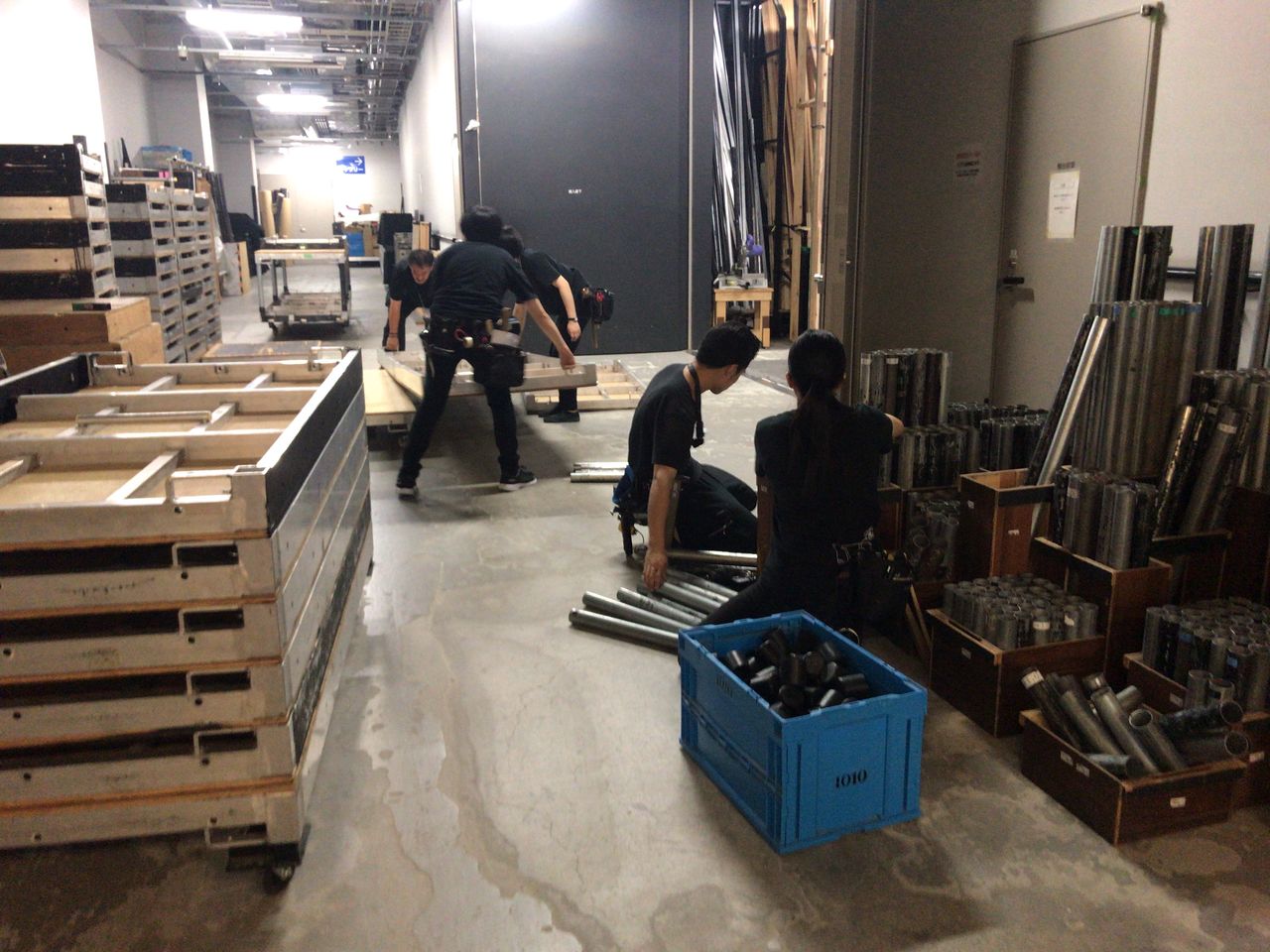 10:00 劇場入りして音響・照明・演出部の各チームはチェックと本番準備作業をします。