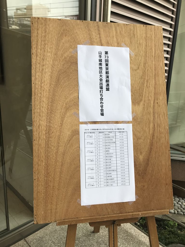 今週の報告は8/26(月) 曇り空の中「第73回東京都高校演劇連盟山手城南地区大会」出場校打ち合わせでした。